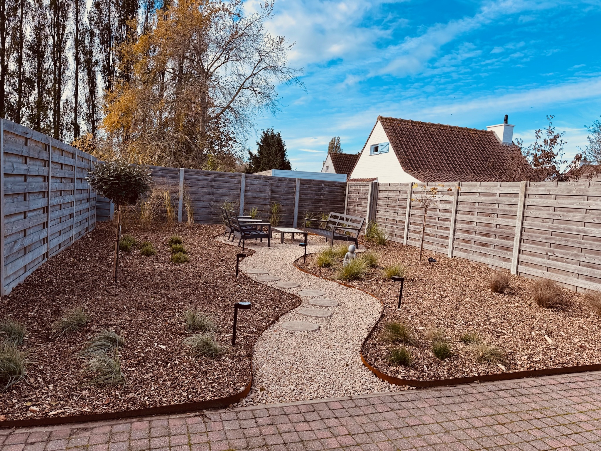De tuin biedt alle privacy en is volledig omheind. Er is een tuintafel, loungeset en barbecue aanwezig.